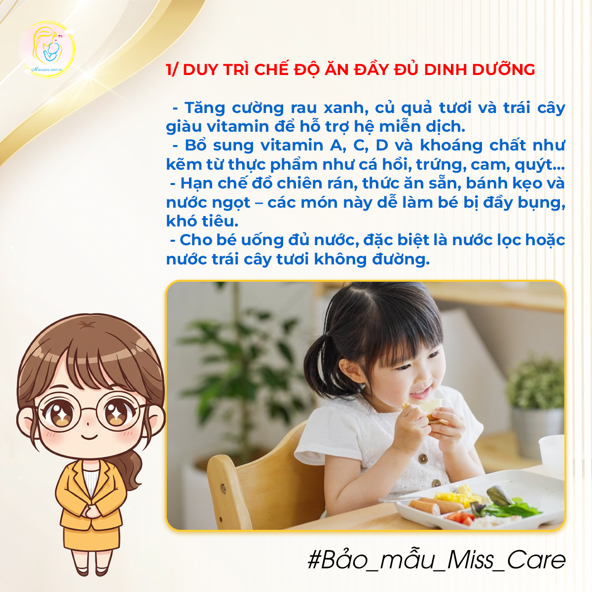 Vì vậy, ba mẹ cần chú trọng hơn đến chế độ dinh dưỡng, sinh hoạt và thói quen hàng ngày của trẻ để bé không ốm vặt, không khó tiêu, vẫn vui khỏe trong suốt mùa lễ hội.