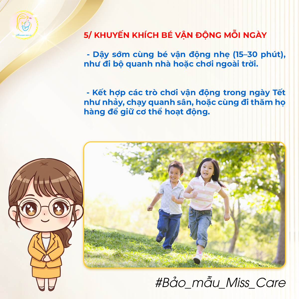 - Kết hợp các trò chơi vận động trong ngày Tết như nhảy, chạy quanh sân, hoặc cùng đi thăm họ hàng để giữ cơ thể hoạt động.